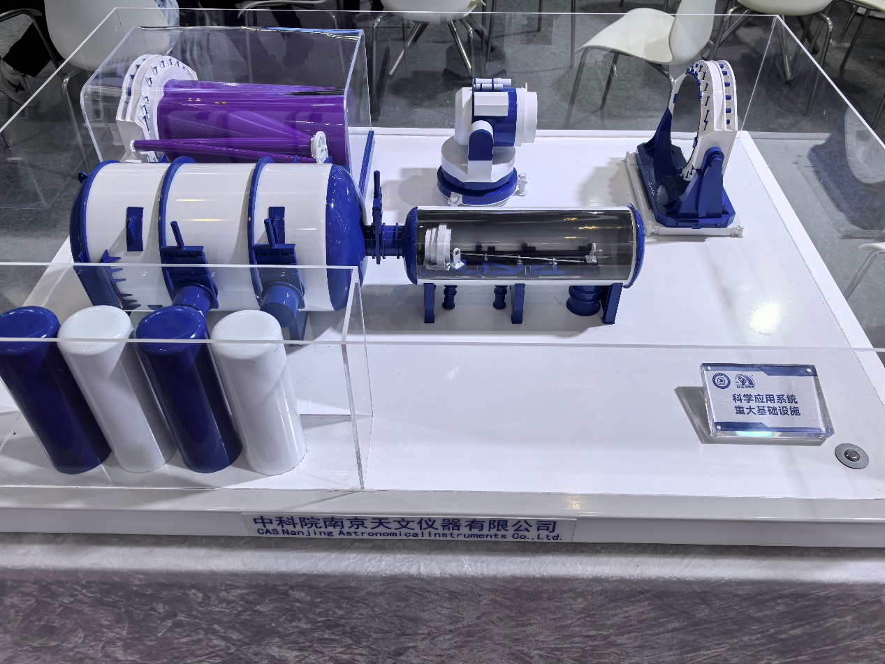 展會(huì)現(xiàn)場,中科天儀首次展出了2.5米多終端通用望遠(yuǎn)鏡模型、1米SLR望遠(yuǎn)鏡模型、科學(xué)應(yīng)用系統(tǒng)重大基礎(chǔ)設(shè)施模型,同時(shí)帶來了各種成熟光學(xué)鏡面加工產(chǎn)品。其中,2.5米多終端通用望遠(yuǎn)鏡是我國最大口徑同軸收發(fā)激光測距望遠(yuǎn)鏡。展品充分體現(xiàn)了公司在技術(shù)融合與協(xié)同創(chuàng)新方面的實(shí)力,也彰顯了其在光學(xué)設(shè)備研發(fā)上的深厚積累。展臺(tái)吸引了眾多科研院所、高校及產(chǎn)業(yè)鏈相關(guān)企業(yè)的專業(yè)觀眾駐足交流,現(xiàn)場反響熱烈,關(guān)注度持續(xù)高漲。
